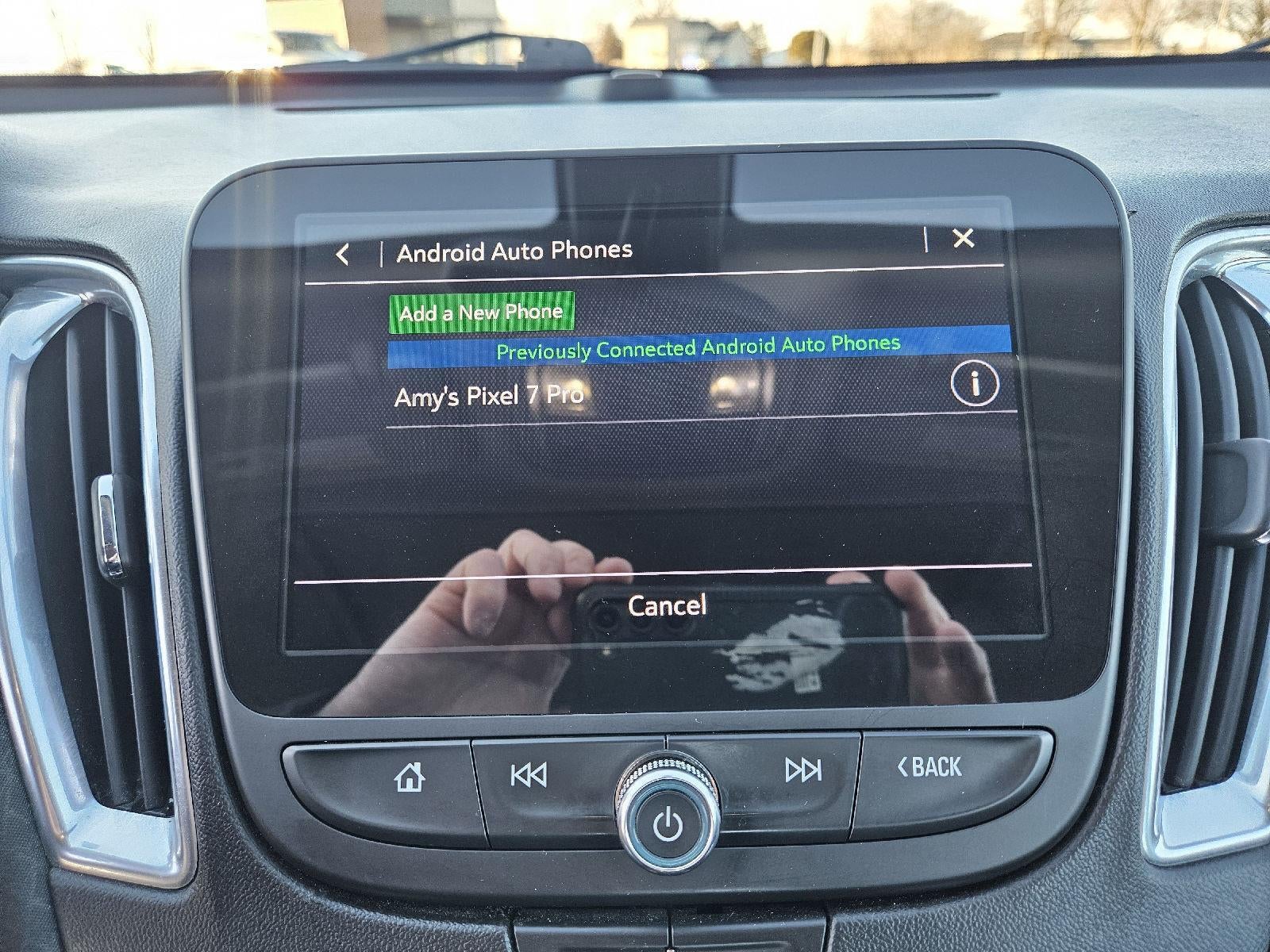 - Audio system, Chevrolet Infotainment 3 system, 8" diagonal color touchscreen, AM/FM stereo. Additional features for compatible phones include: Bluetooth® audio streaming for 2 active devices, voice command pass-through to phone, Apple CarPlay and Android Auto capable.